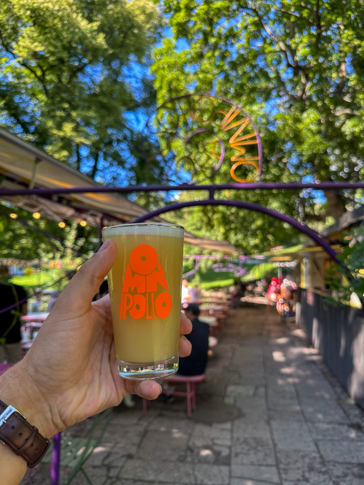 We began our trip with a visit to Omnipollo Flora, where we started with incredible burgers and sides that set the tone for the day, with a sampling of Amy, their French Oak Pilsner. Housed in an old flower shop in the middle of a park, Flora is Omnipollo's summer venue. Serving up iconic soft serves, ice creams, amongst an array of great beers.