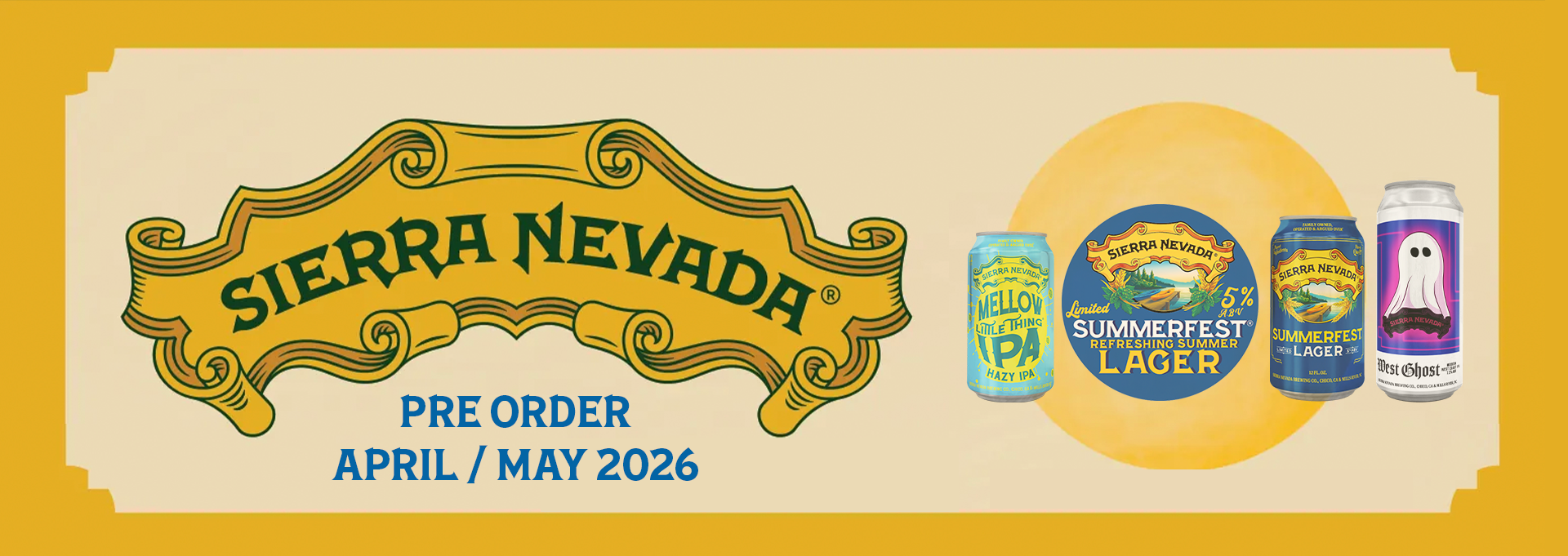 Sierra Nevada is back with a fresh pre-order built for early year drinkability, with three brand new spotlights leading the charge: Mellow Little Thing (soft, hazy, easy-going with rounded tropical notes), West Ghost IPA (a stripped-back, modern West Coast IPA with clean bitterness and bright citrus), and Summerfest (crisp, classic lager built for repeat drinking and long sessions).