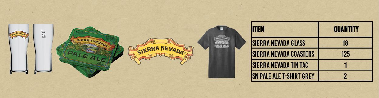 The kit also features a distinctive Sierra Nevada tin tack, ideal for decorating your space and drawing attention to the new offerings. Lastly, the package includes stylish Sierra Nevada Pale Ale grey T-shirts, which are great for staff to wear or to use as promotional giveaways.